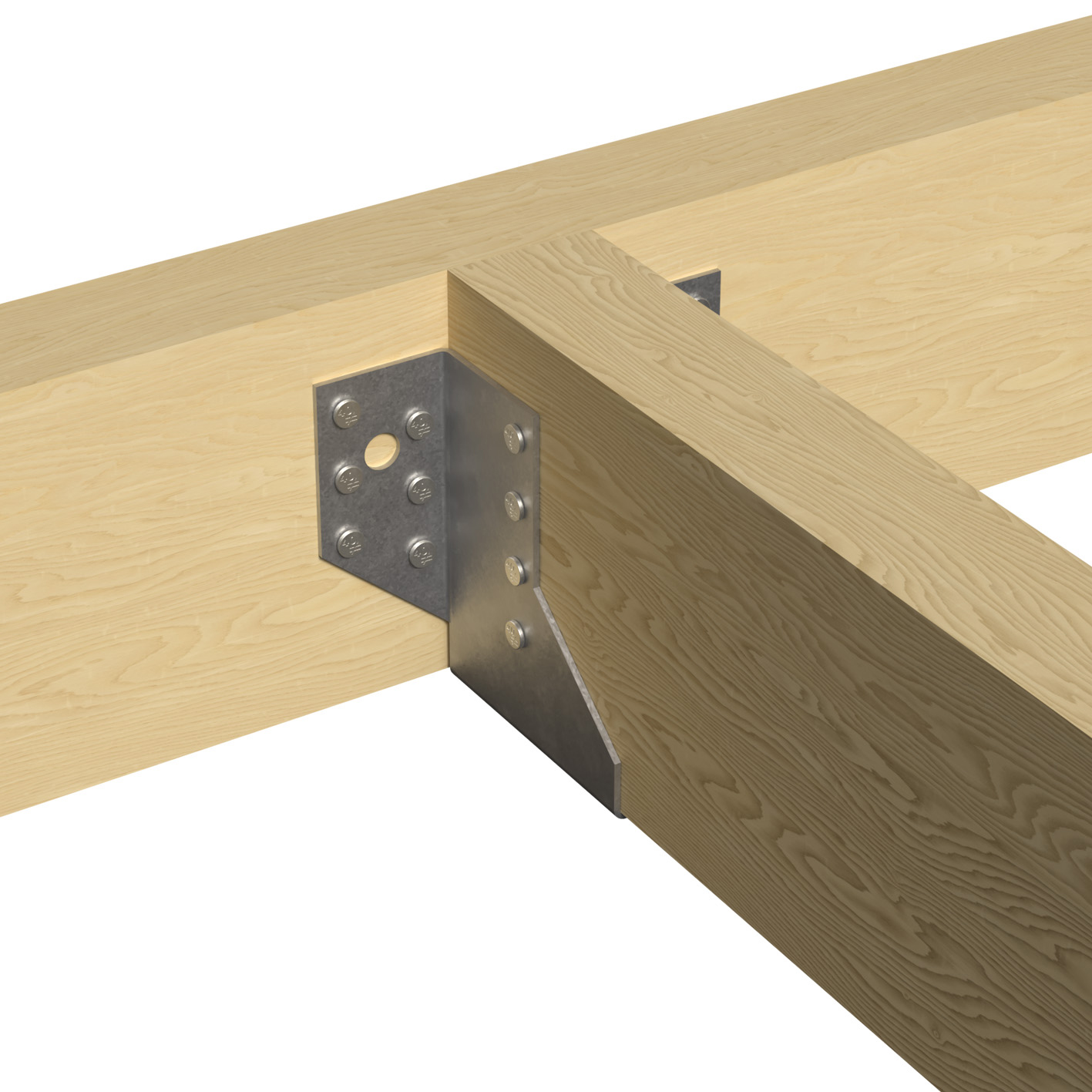 Installation Note: For maximum load capacity, ensure all nail and bolt holes are filled as per the Simpson Strong-Tie nailing schedule. The hanger should support at least 60% of the joist height to prevent rotation.